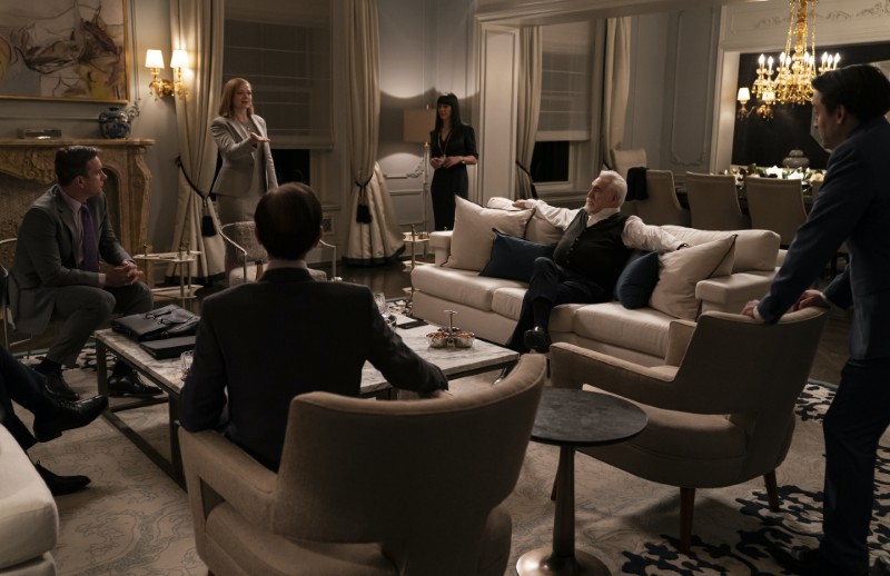 In Succession, nothing looks flimsy. Tables look heavy. Sofas look anchored. Chairs look architectural. Even decorative objects have heft.
