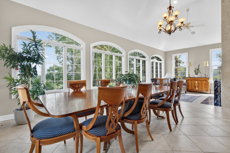 A library and sunroom overlooking the grounds