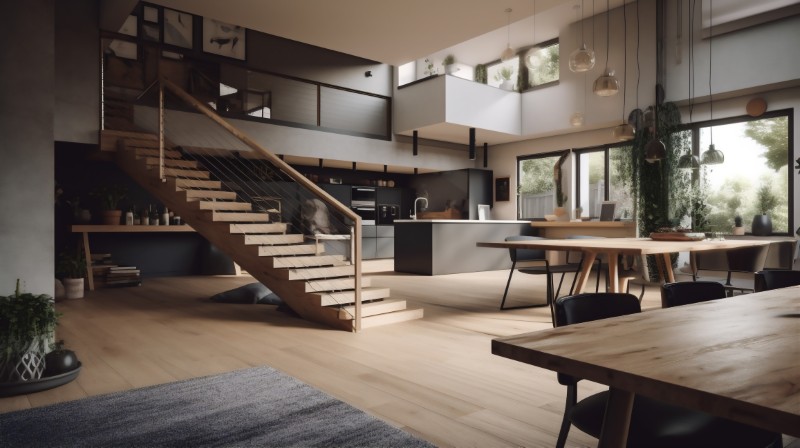 Using the same flooring material throughout a floor eliminates visual breaks that mentally “reset” a space.