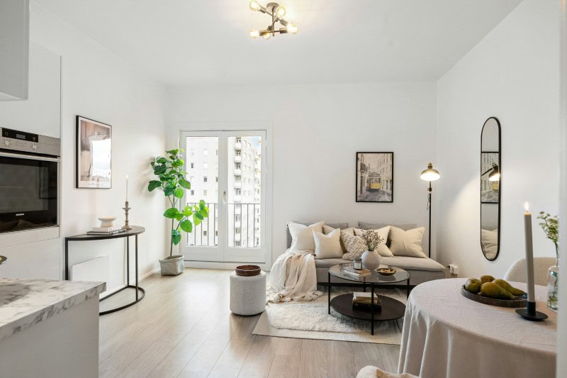 A dining area might share light with the living room, or a hallway might open toward a window at the end.