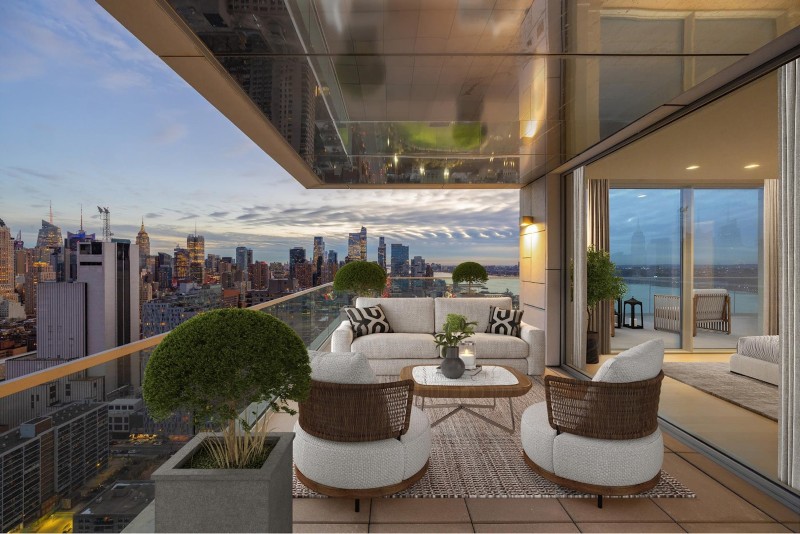 There are penthouses with great views — and then there’s PH6/7 at 611 West 56th Street, a 5,100-square-foot duplex perched high above Manhattan with its own 1,572-square-foot wraparound terrace.