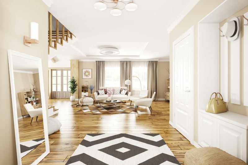 A builder-grade home often lacks a true “landing space” for keys, shoes, bags, mail, and coats, which means mess spreads instantly.