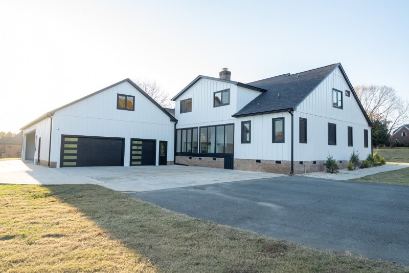 Above the garage sits a separate flexible space that can function as a guest suite, private office, or studio.