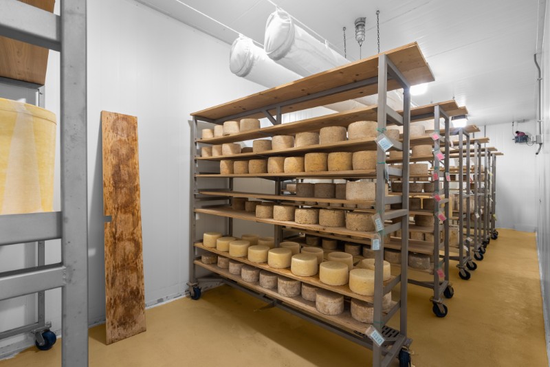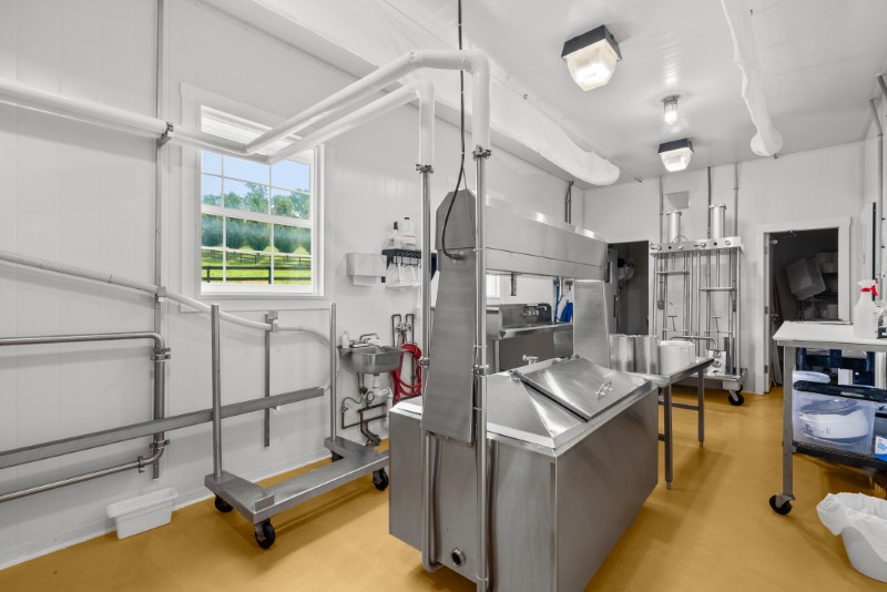 An on-site artisan cheesemaking facility produces raw milk cheeses that have earned awards from organizations including the American Cheese Society and the Los Angeles International Dairy Competition.