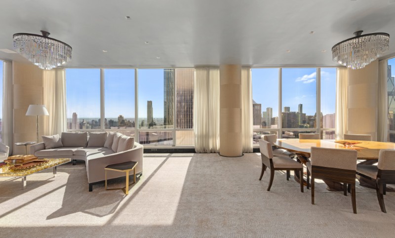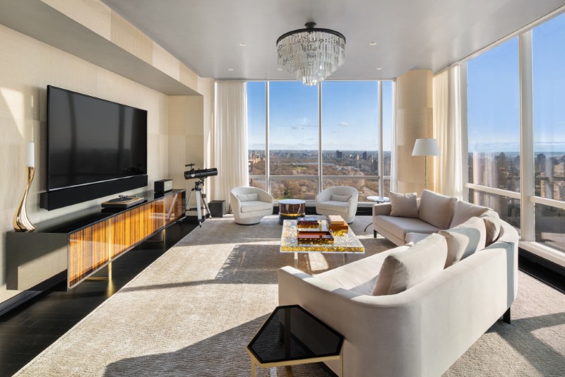 Each level features the same 43-foot-long corner Grand Salon, the same floor-to-ceiling glass, and the same sweeping views of Central Park, the Hudson River, and the Midtown skyline.