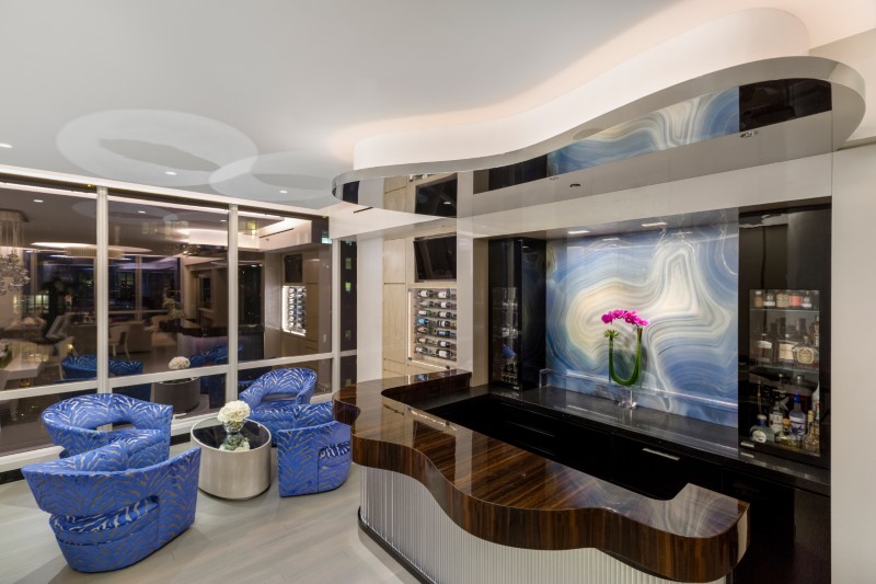 Each level includes a 43-foot corner Grand Salon wrapped in glass. The scale alone makes these rooms notable, but the triple exposures lift them into rare air.