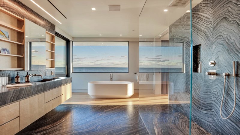 That dual purpose is still visible throughout the property, where museum-level materials and carefully controlled natural light were integrated into a structure designed to face the ocean at every turn.