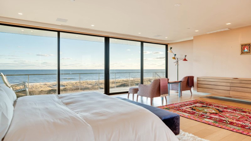 The glazing was selected specifically to shield artwork from coastal exposure, reflecting Arslanian’s intent to display works by artists such as Basquiat, Haring, Warhol, Jeff Koons, and Julian Schnabel inside the home.