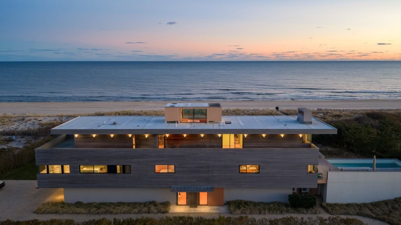 The standout home at 15 Dune Road at was designed by Mark C. Matthews Architecture in collaboration with Francis D’Haene of D’Apostrophe Design.