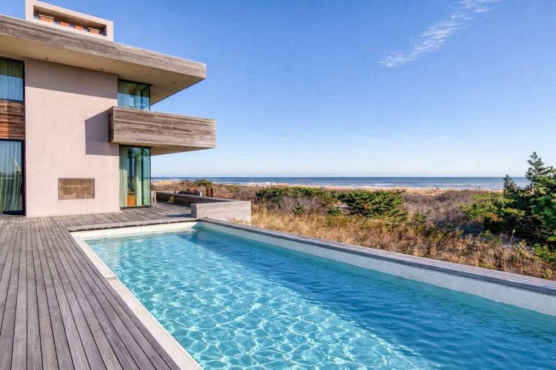 The pool sits parallel to the shoreline, keeping the ocean as the dominant backdrop.