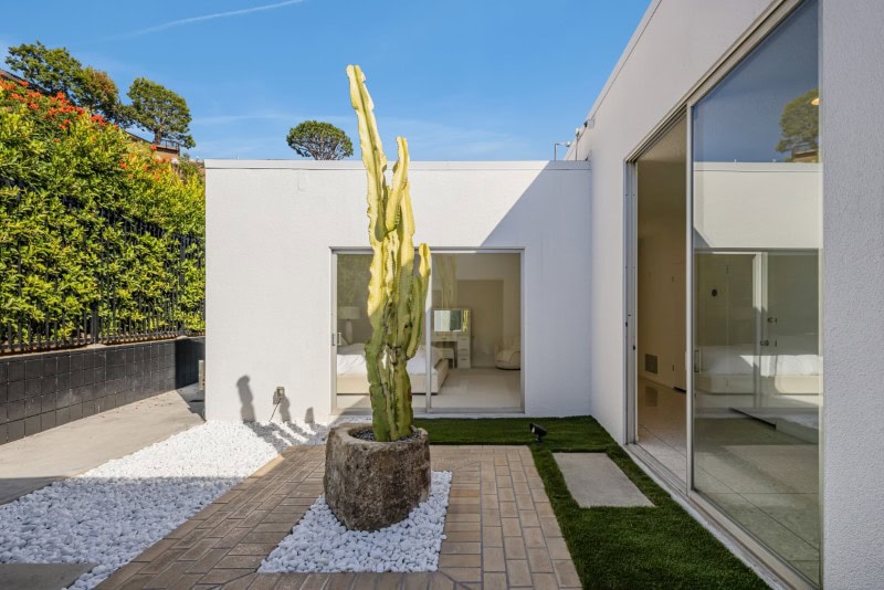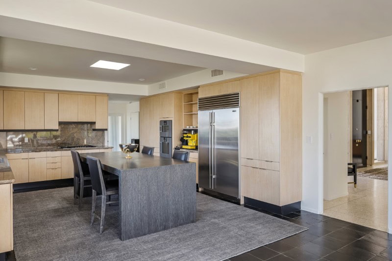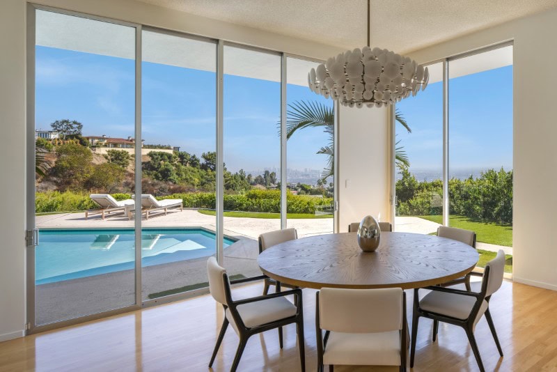That restraint — maintaining the proportions, materials, and spatial relationships of the 1963 design — is increasingly rare in Trousdale Estates, where many midcentury homes have been replaced with much larger contemporary builds.