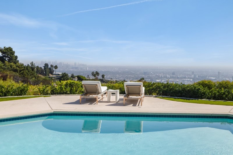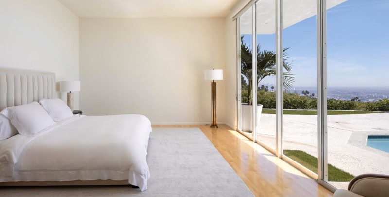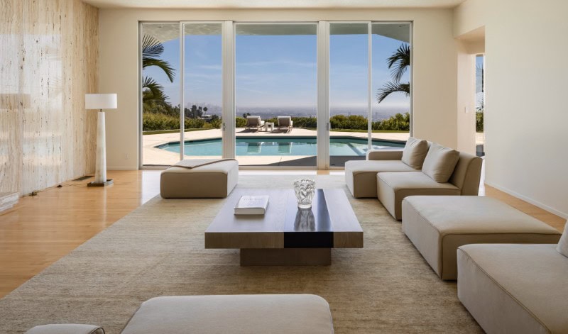 Once inside, walls of glass frame expansive views that stretch from the surrounding canyons across the city skyline and all the way to the Pacific Ocean.