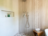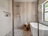 This one-story Spanish Revival home in the Studio City neighborhood of Los Angeles was ripe for a down-to-the-studs remodel. The plumbing and electrical systems were old, and the finishes were crumbling. Oro Coast Builders completed a full-house remodel, and in the primary bathroom it went for a restful,…