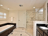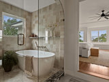 These Austin, Texas, homeowners dreamed of a chic, contemporary en suite with natural warmth, but their existing bathroom was anything but. The dated traditional-style space felt cramped and awkward, with a dark vanity, bulky corner shower, decked tub and a confusing maze of doors leading