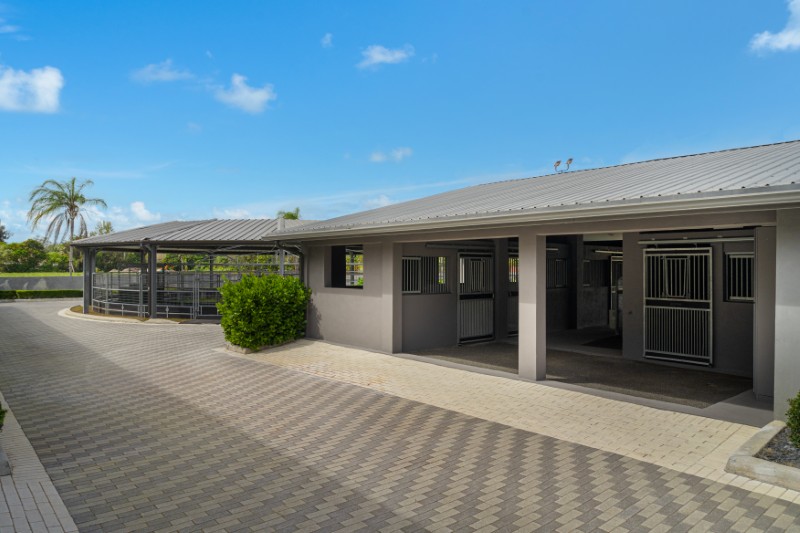 Beyond the barns, the property includes oversized irrigated grass paddocks, each equipped with permanent concrete run-in sheds and fans to maintain consistent conditions throughout the year.