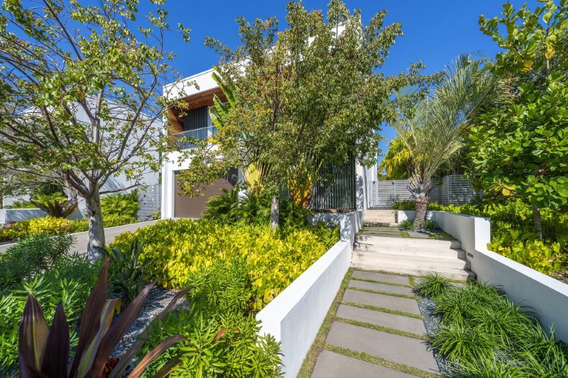 Priced at $9.249 million, the modern villa features more than 4,200 square feet of interior space, private outdoor living areas, and direct Intracoastal frontage.