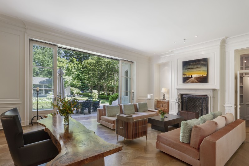 Listed by Compass agent Glennis Beacham, the Blackland Road estate is one of Tuxedo Park’s highest-priced offerings on the market right now — and it earns the spotlight. Between an indoor pool, sauna, and elevator, the daily rhythm swings easily from formal entertaining to wellness mode, no commute required.