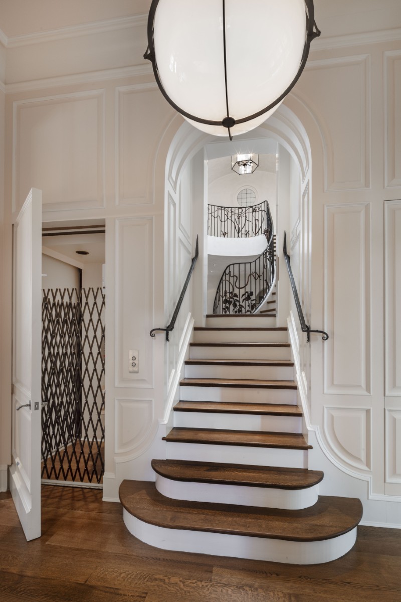 The Palladian bones do the heavy lifting — symmetry, soaring ceilings, and a layout that reads clean and intentional — while Mensoff’s custom metalwork and tailored millwork layer in artistry. It’s grand without going loud.