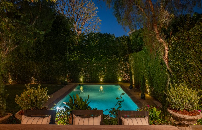 Now listed for $9,995,000 by Brent Watson and Marco Salari of the Watson Salari Group at The Beverly Hills Estates, the star-studded property spans nearly half an acre and sits behind tall hedges and double gates for full privacy.