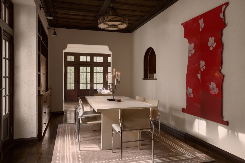 Throughout the residence, original hardwood and tile floors, high ceilings, and broad art-ready walls reinforce the home’s architectural integrity.