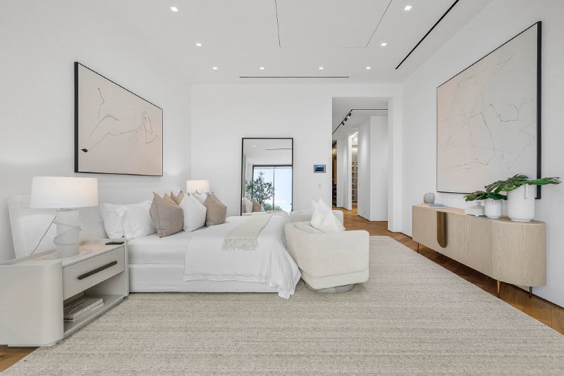 A first-floor primary suite wrapped in La Finestra glass