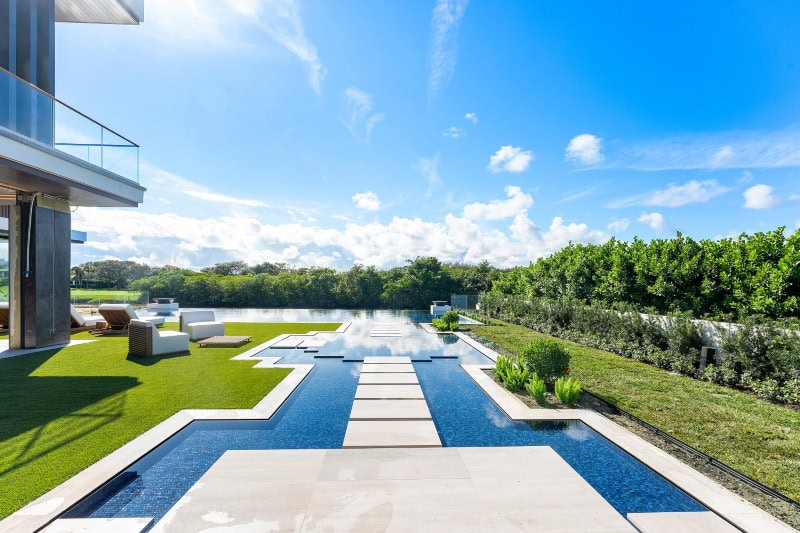 This five-bedroom, six-bathroom, four half-bath estate was built by Boca Raton Custom Homes, with architecture by Randall Stofft.