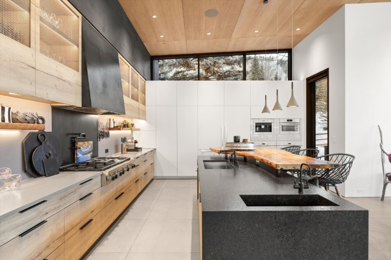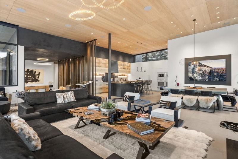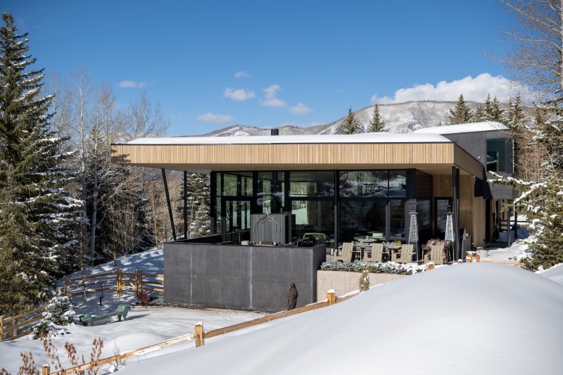 Owned by jewelry designer Jane Berg, founder of the Jane Berg Collection, the property brings together alpine setting, modern design, and a layout built around both privacy and entertaining.