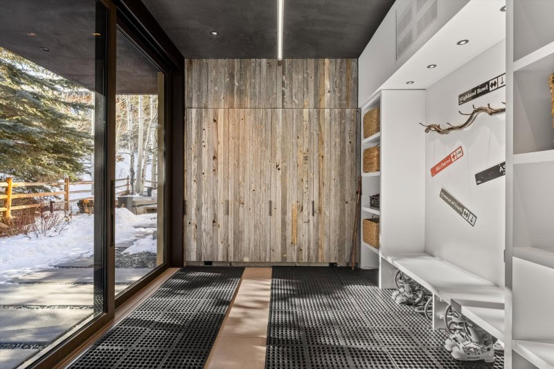 The home offers direct ski access at Aspen Highlands, with entry through the Thunderbowl Lane skier underpass — a feature that places it firmly in the ski-in/ski-out category.