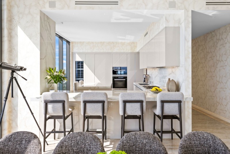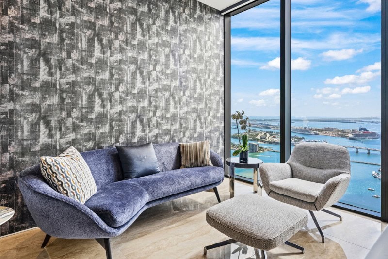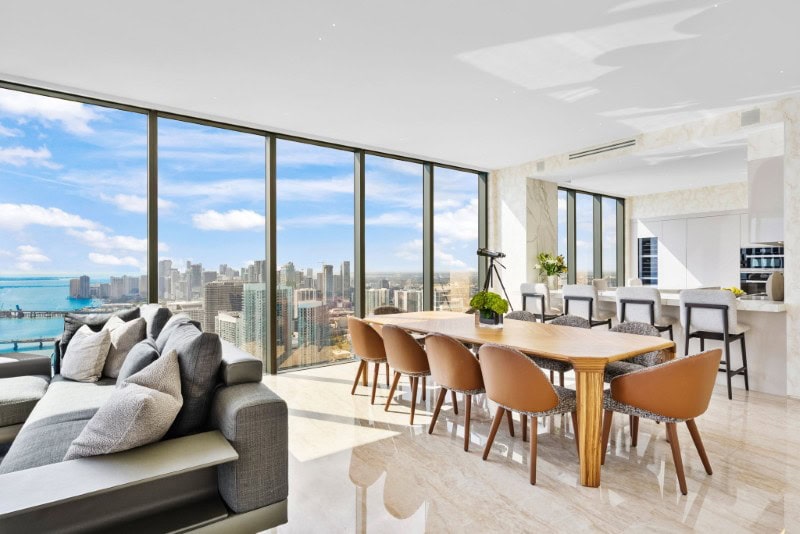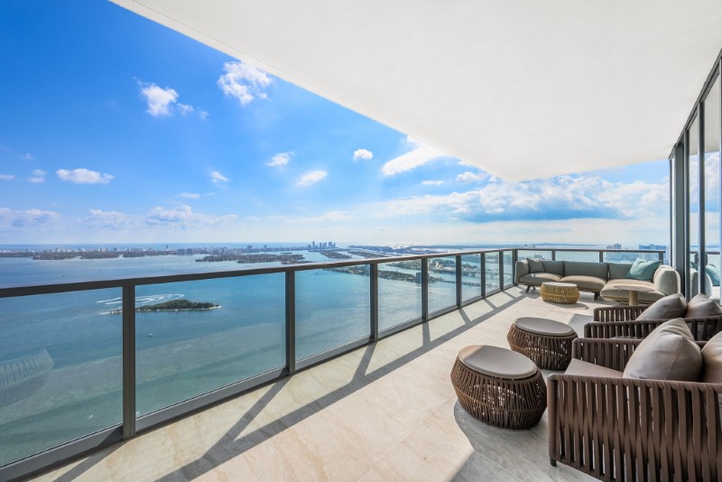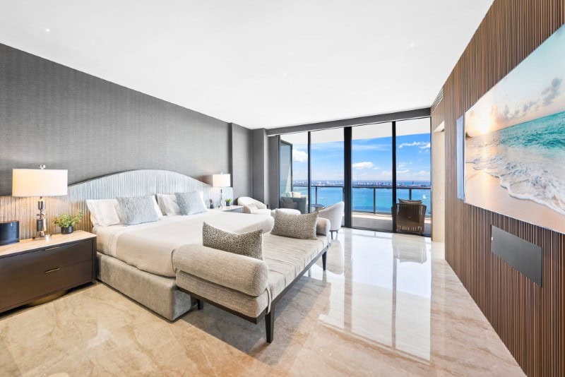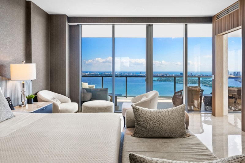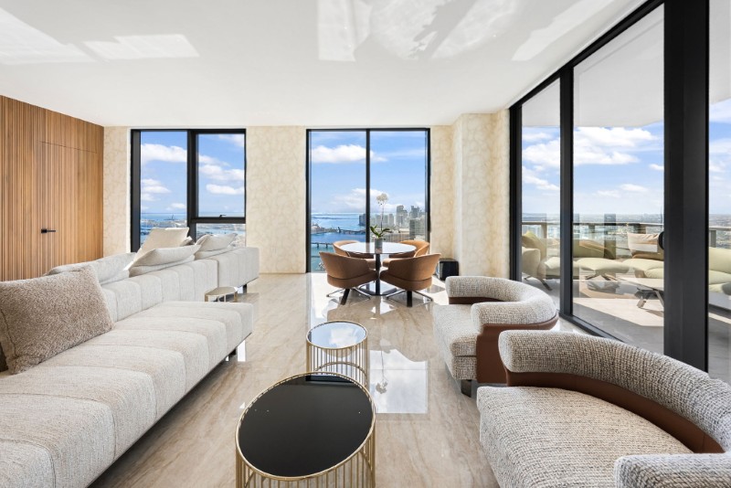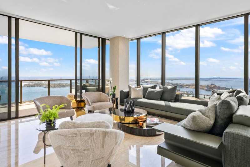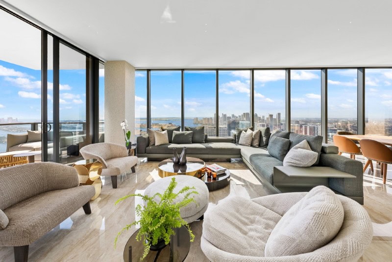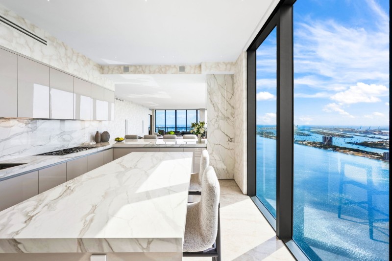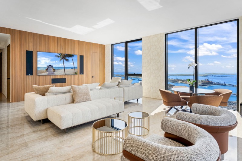 A full-floor residence high above Biscayne Bay is offering a different take on waterfront living, one that trades docks and seawalls for elevation and uninterrupted views.