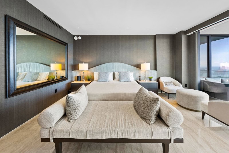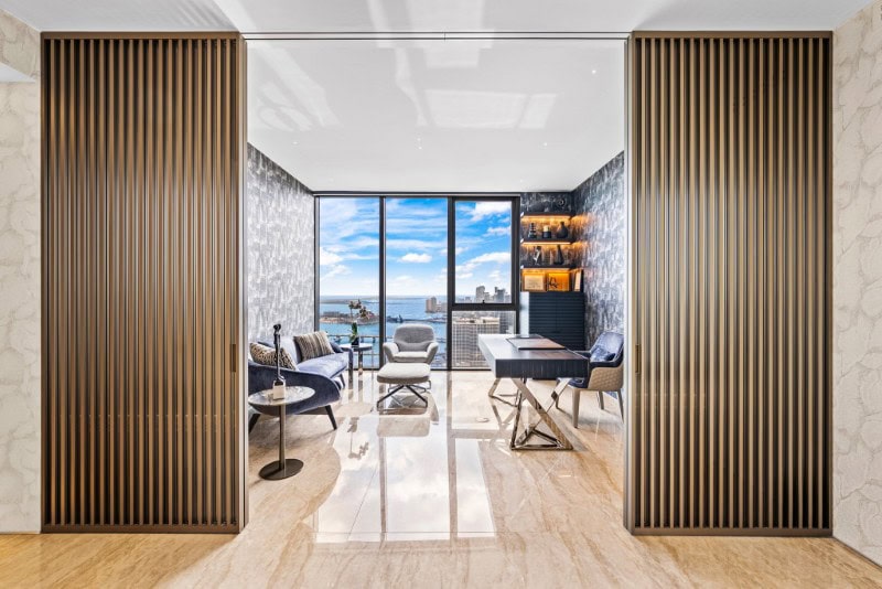 A glass-enclosed office allows for privacy without sacrificing views. A family room with built-in bar can also function as an additional bedroom if needed. The layout adapts to different uses, not something you typically see in South Florida condos, even at this price point.
