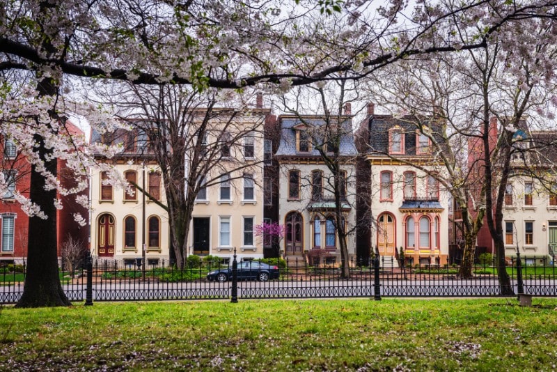 Brownstones, row houses, and freestanding residences span several architectural periods, from Federal to Victorian. Neighborhoods like Center Square showcase dense, walkable streets lined with well-preserved homes.