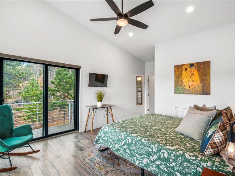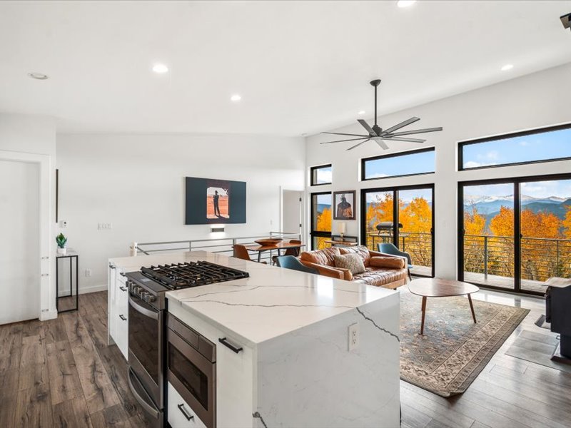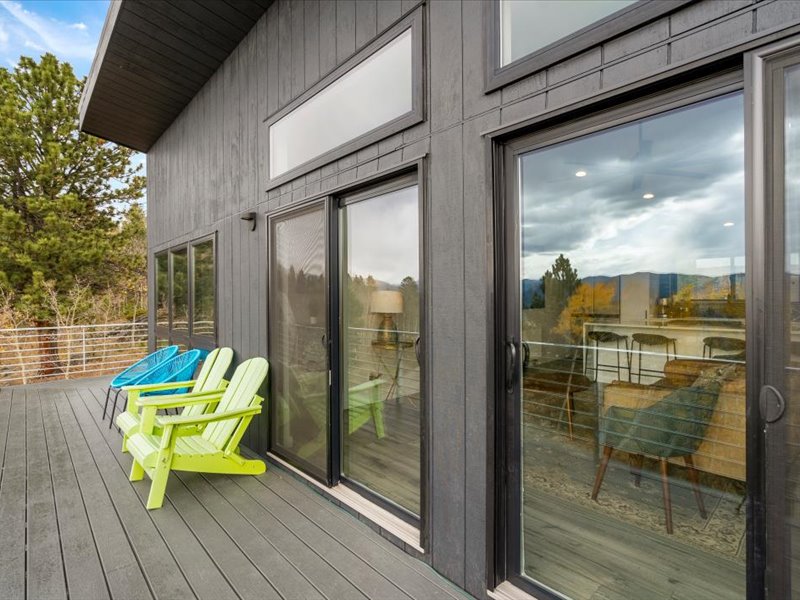 Oversized windows pull in natural light, and the layout opens directly to the surrounding landscape — including thousands of acres of National Forest right outside the door. Trails wind toward St. Mary’s Glacier, Winter Park, and several nearby peaks.