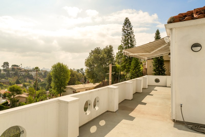 The balcony’s sweeping views stretch from the Hollywood Hills to the downtown skyline, adding a cinematic quality to the everyday.