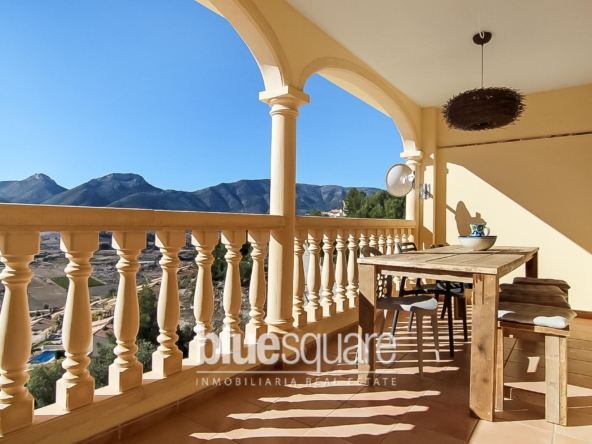 Modern townhouse in a stunning sought after urbanization in the Jalon valley. This property is at the top of the resort with stunning views overlooking the local villages, mountains and countryside. There are 2 levels with 2 bedrooms on the bottom level with balcony and a bathroom. On the top floor you will find a third bedroom, kitchen and living room with access to a terrace with picturesque views. There is also a large communal swimming pool with plenty of space for sunbathing and to soak up that summer and winter sun. Close by in the village of Jalon you will find a range of Spanish restaurants, supermarkets and local shops.