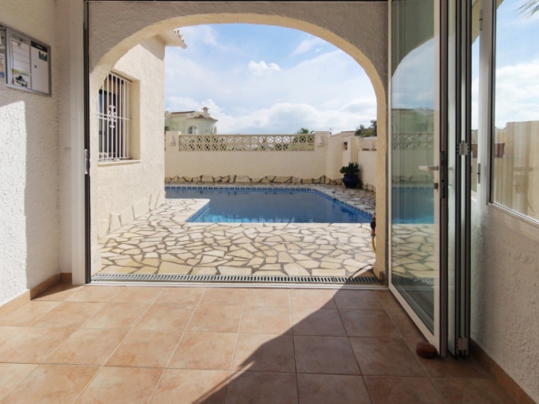 Modern villa located in a lovely residential area. The rooftop terrace offers fantastic panoramic sea and mountain views. The villa features a spacious open plan living/dining room with modern fully equipped kitchen, two large bedrooms, one bathroom and guest toilet. The living room and large covered terrace (Naya) opens onto the large pool terrace and the barbecue area and outdoor kitchen. The property is well maintained and very well priced.
