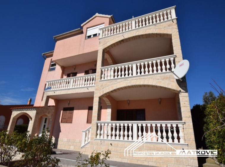 Detached apartment house located on the seafront near Sibenik. The total plot area is 502 m2 and covers a living area of 315 m2 and is ideal for tourism, as a second home, or for your well-deserved holiday. The fully furnished and well maintained apartment building is ready to move in and consists of ground floor, first floor and attic.