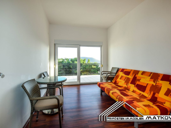The first level is 66,70 sqm. and it has the living room with the kitchen, one bedroom, WC and an outdoor space, garden.