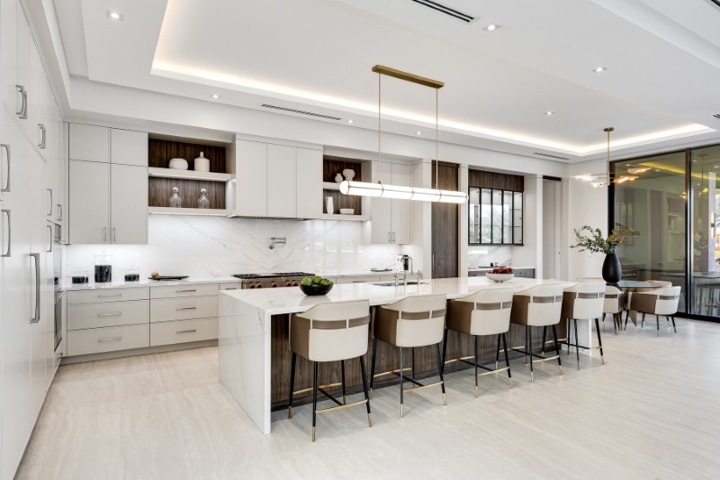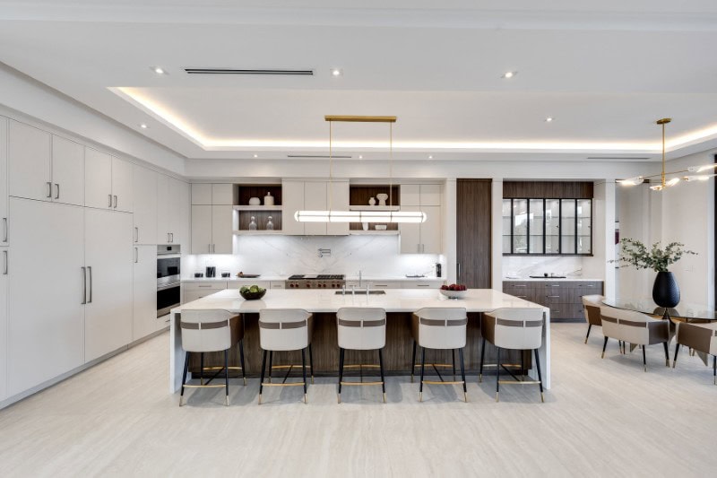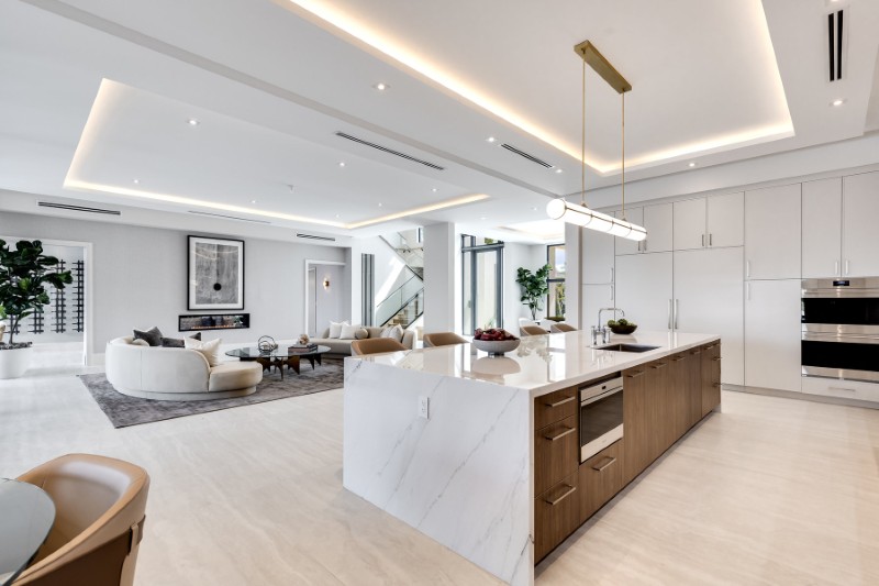 The finish list is serious: wide-plank white oak floors, tailored millwork, and marble countertops sourced from the same quarry as the Lincoln Memorial.