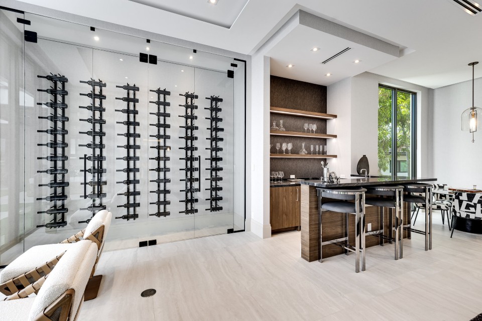 For play and hosting, there’s an elevator, a clubroom with a 300-bottle wine display, and a 3-car garage with room for gear.