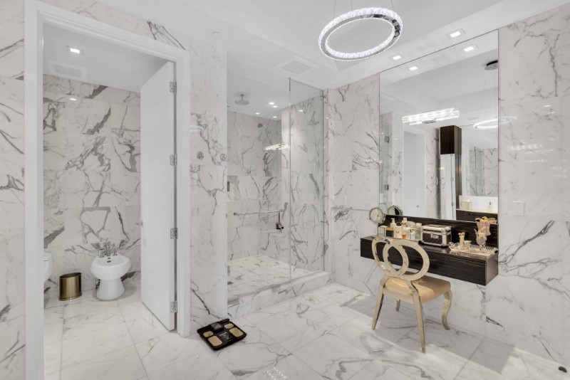 The residence comes fully furnished with curated pieces by Fendi and Armani Casa, infusing the interiors with understated luxury and modern coastal elegance. A neutral palette of limestone and hardwood flooring complements custom millwork and designer lighting.