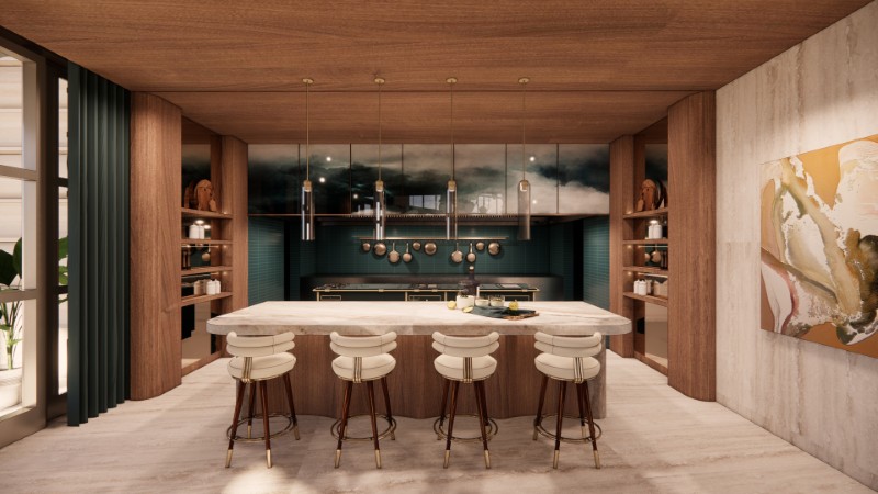 Event-ready lounges and the chef’s table enable private gatherings, tastings, and resident events within the building.