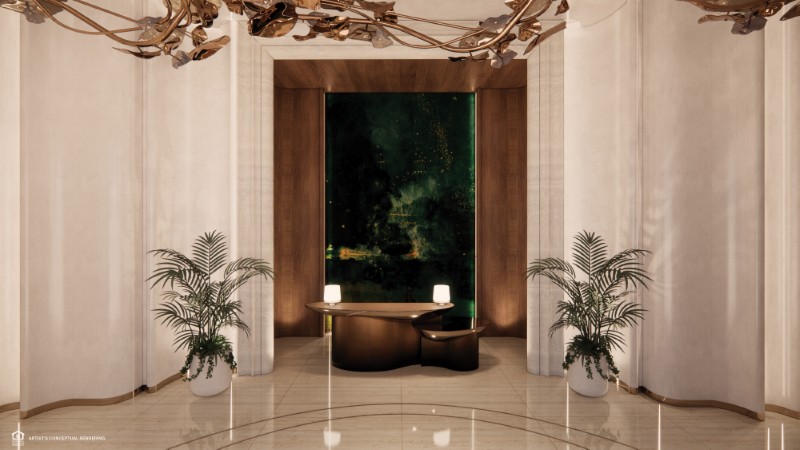 The 50-story tower includes 152 condominium residences, spanning sky villas, penthouses, and stand-alone garden villas, with services aligned to the brand’s five-star standards.