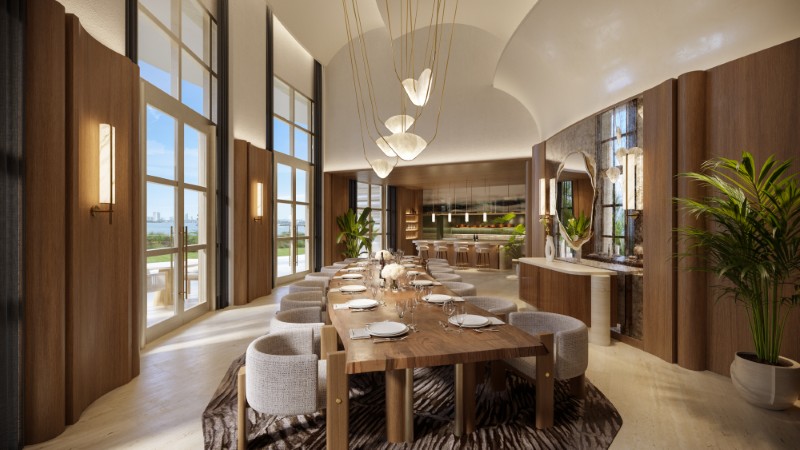 A fine-dining restaurant exclusive to residents is led by Michelin-starred chef Fabio Trabocchi. The amenity package also includes a chef’s table for private dining and events.