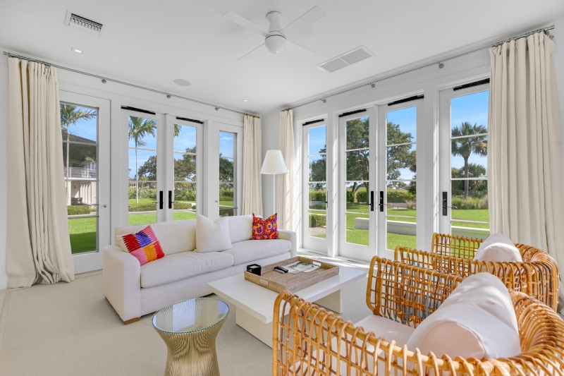 Across the compound, casual lounges double as flexible gathering spots, with natural light pouring through multiple sets of French doors.