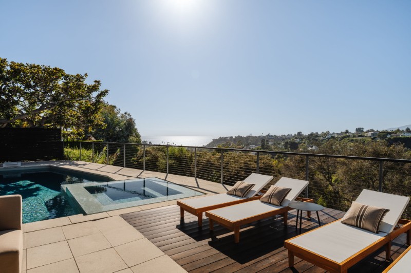 Upstairs, the primary suite serves as a private retreat with its own terrace overlooking the Pacific, dual spa-style baths, and boutique-inspired closets.