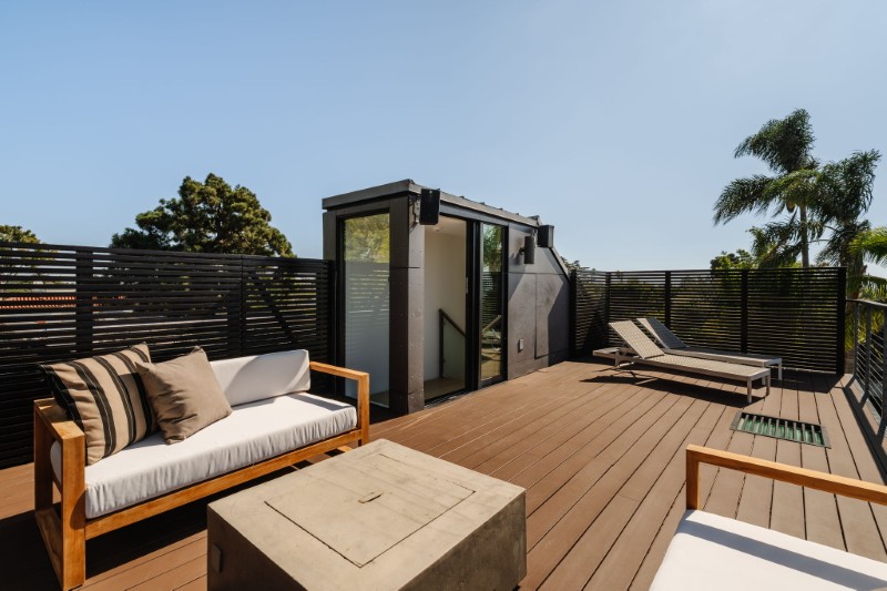 The property’s outdoor amenities elevate daily life to a resort level. The pool and infinity-edged spa look out over the ocean, while a rooftop deck with firepit provides a spectacular perch for sunsets.