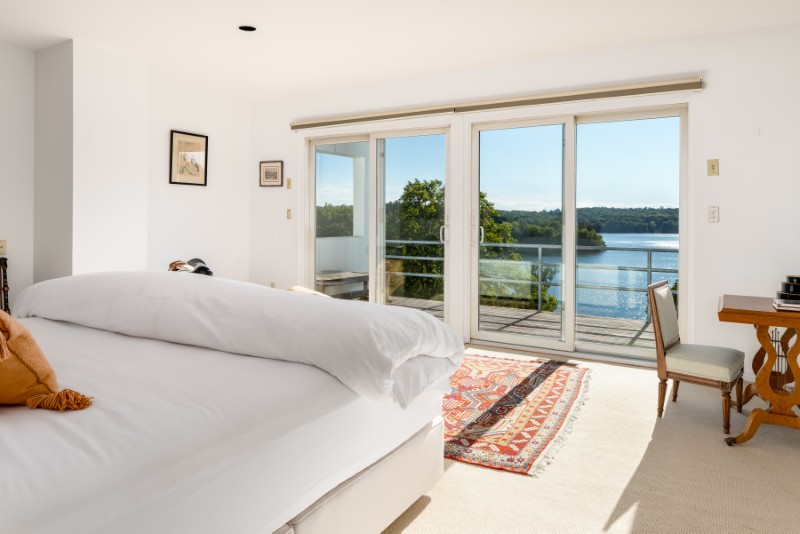 Главная спальня повторяет основные жилые помещения дома и имеет собственную террасу с видом на воду, а также большую ванную и гардеробную.
