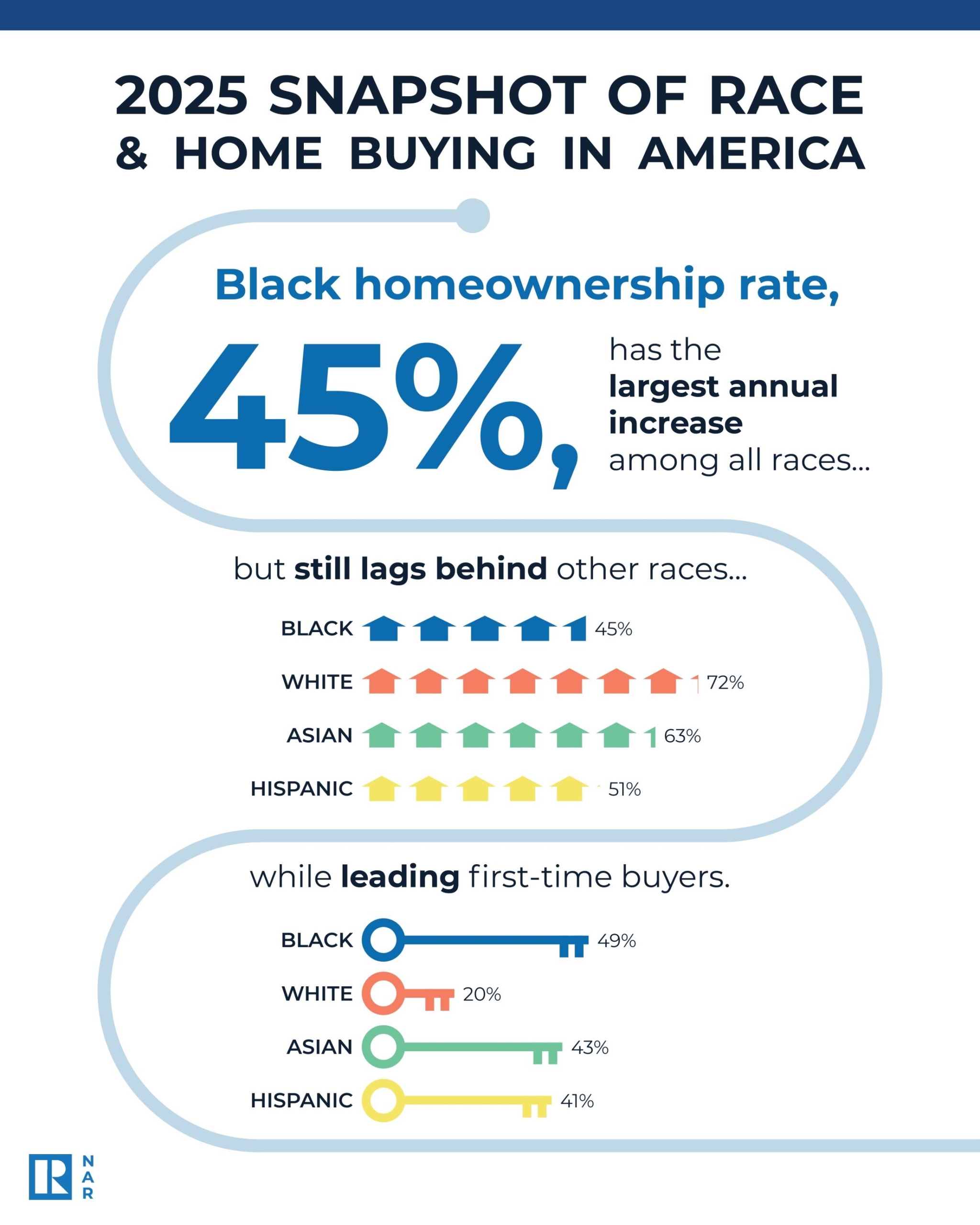 В отчете Национальной ассоциации риелторов за 2025 год о расовых различиях и покупке жилья в Америке сообщается, что в 2023 году в США наблюдался самый высокий годовой прирост среди всех расовых групп среди чернокожих. Однако уровень владения жильем среди чернокожих по-прежнему значительно отстает от уровня владения жильем среди белых.