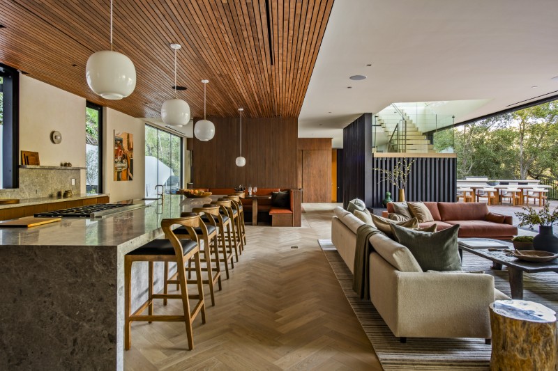 Designed by Abramson Architects, the six-bedroom, nine-and-a-half-bath residence feels like a preview of where high-end California living is heading. The materials are organic, the lines are clean, and the spaces are shaped to slow the pace of daily life.