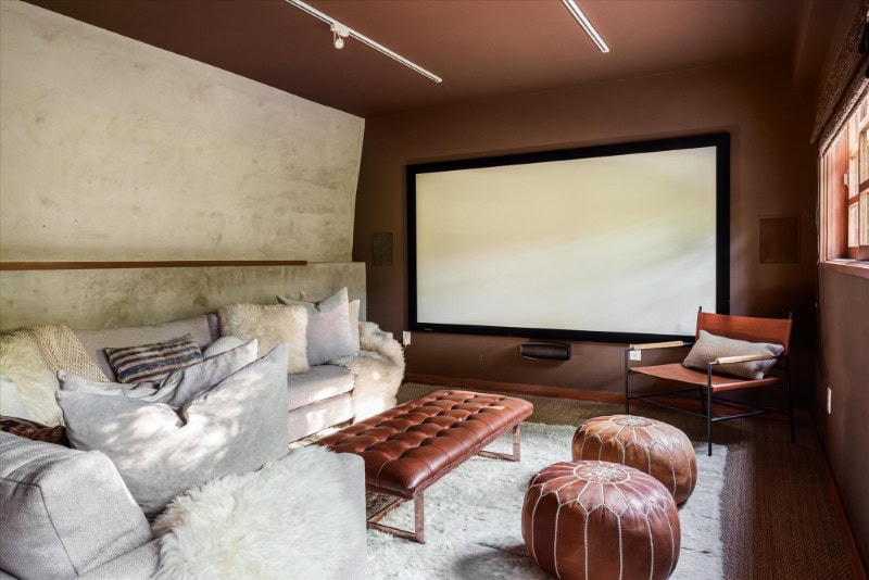 A state-of-the-art private screening room reinforces the home’s cinematic credentials.